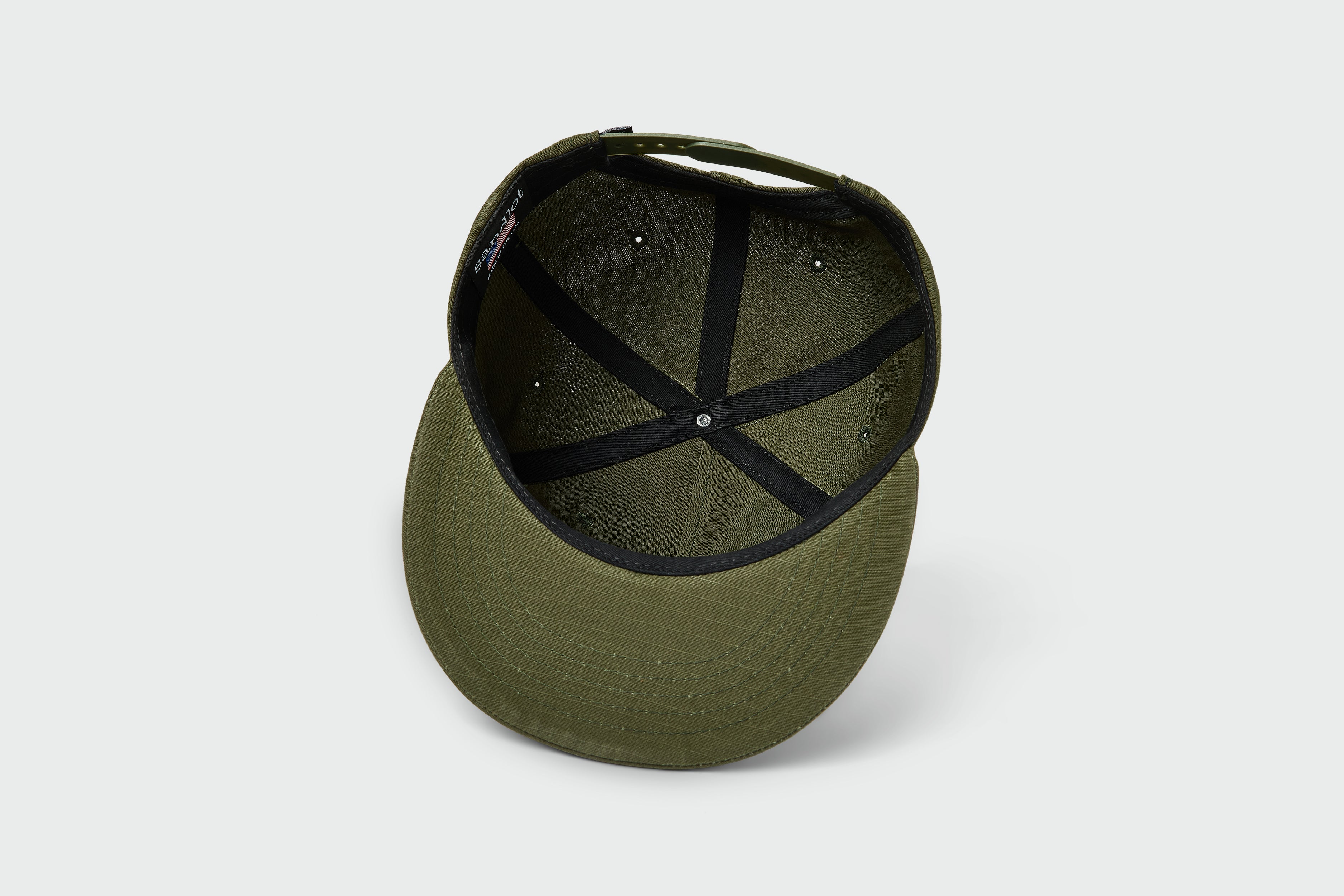 Cut and sewn in KC, this 100% cotton cap features an adjustable snapback. Sandlot Model 5040 5 Panel Vintage Flatbill.