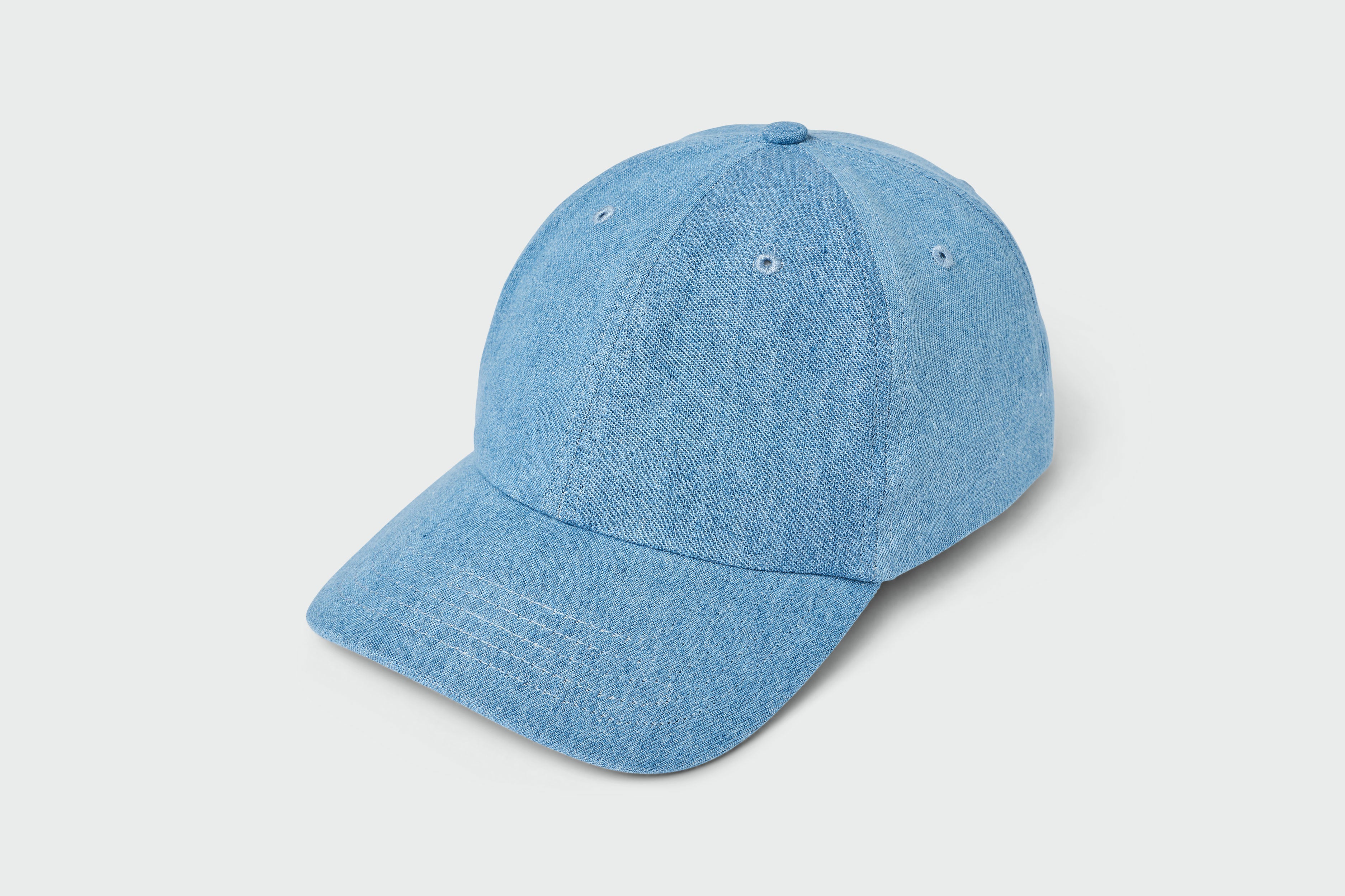 Cut and sewn in KC, this 100% denim cotton cap features a matching adjustable strap back and a solid blank design. The pre-curved hat's unstructured fit is stylish and comfortable.