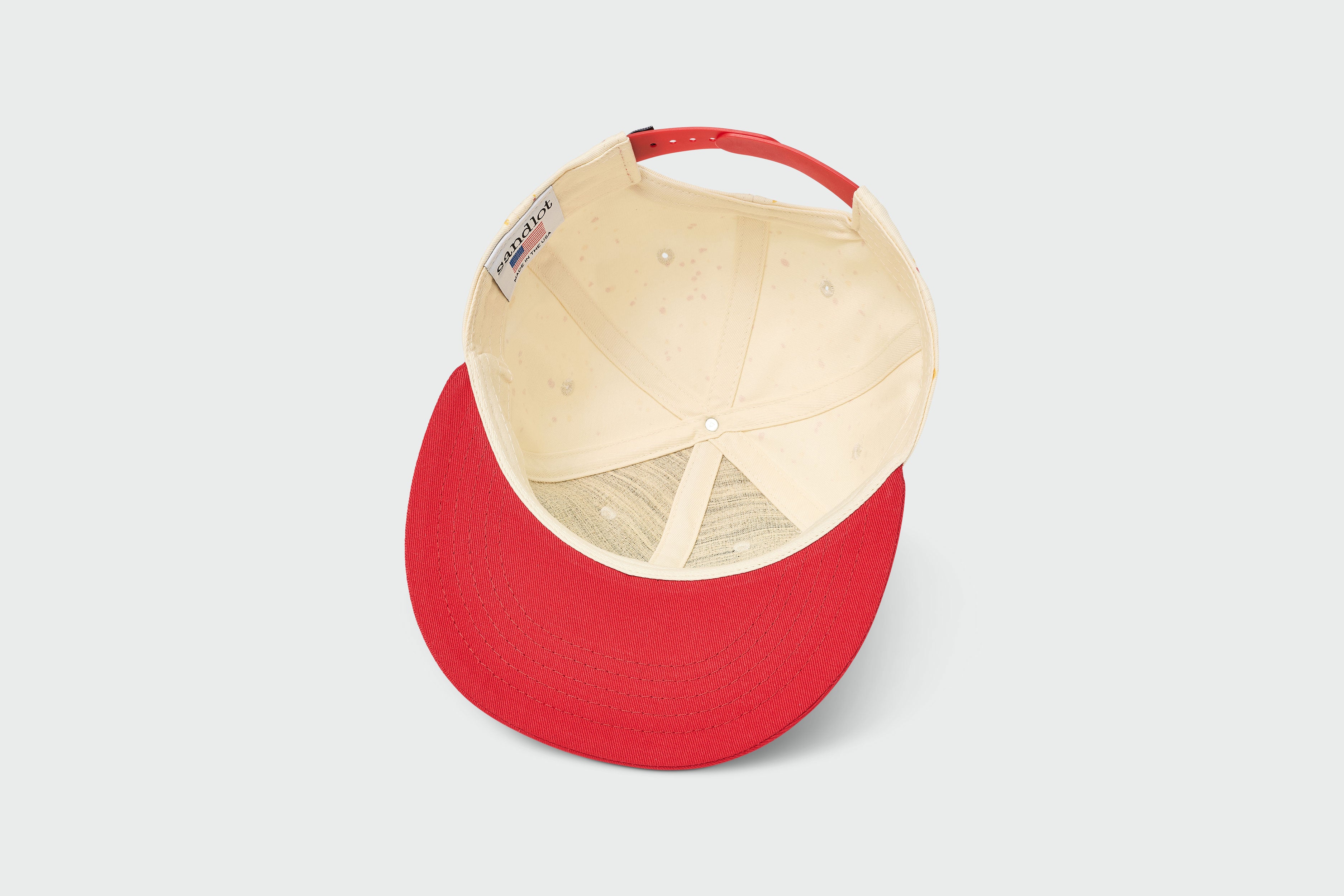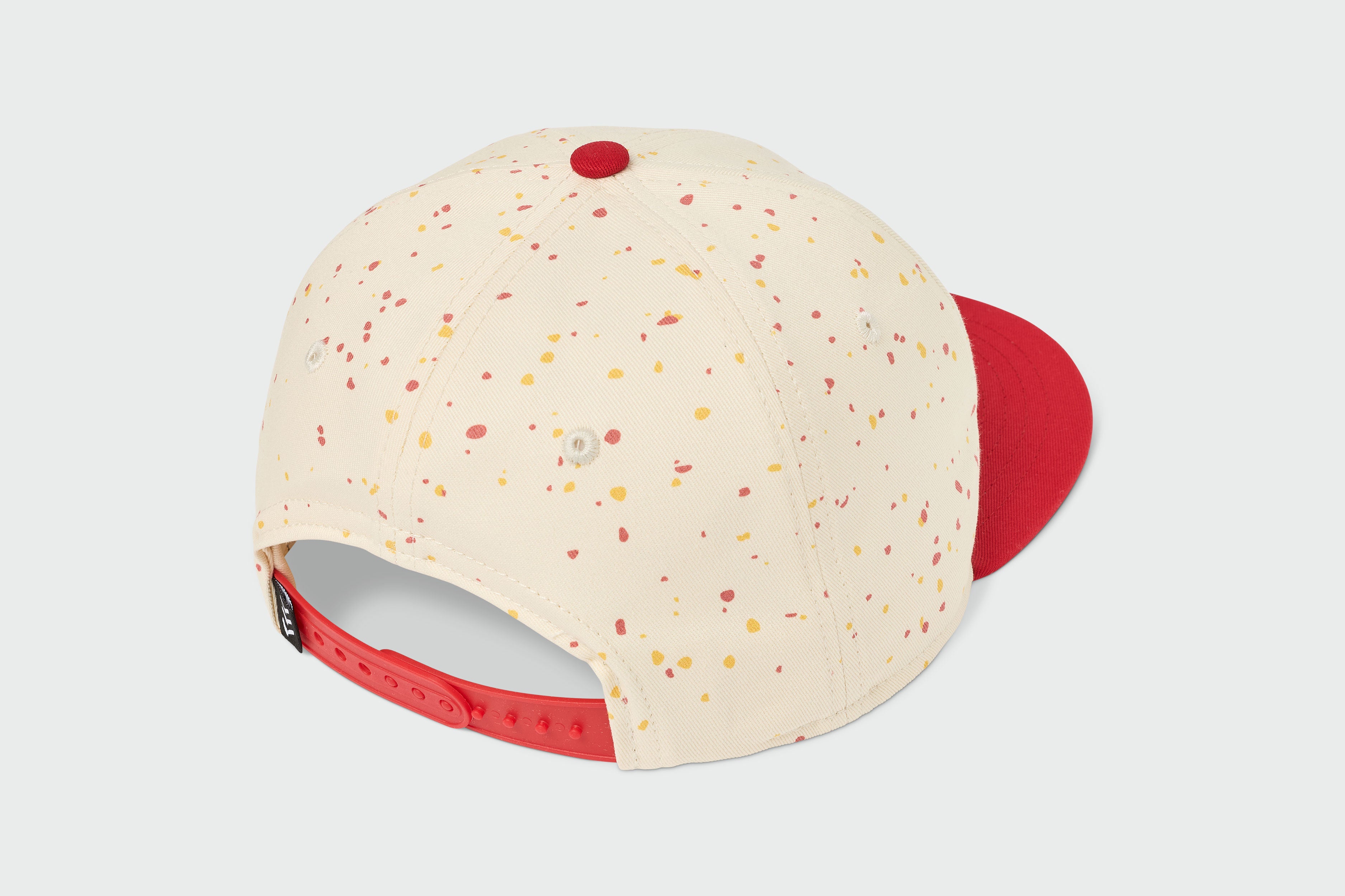 The Kansas City Confetti Vintage Flatbill features a speckled confetti like print directly on the crown fabric, an embroider puff KC with an adjustable red plastic snapback closure. Sandlot Model 1735 6-Panel.