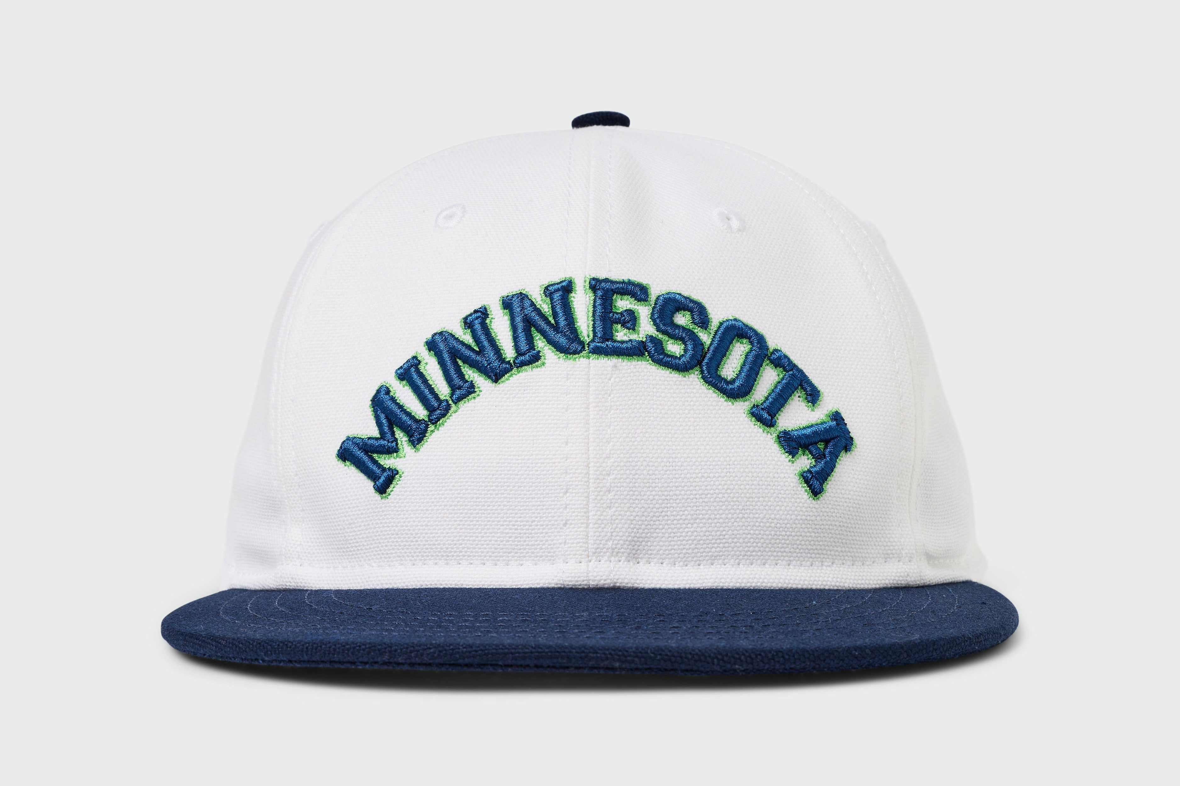 Our classic 6-panel made from durable canvas with arched Minnesota that is most definitely not written upside down. This is a Sandlot 1735 6-Panel flatbill with a white plastic snapback. The bill arrives flat, bend to your preference.