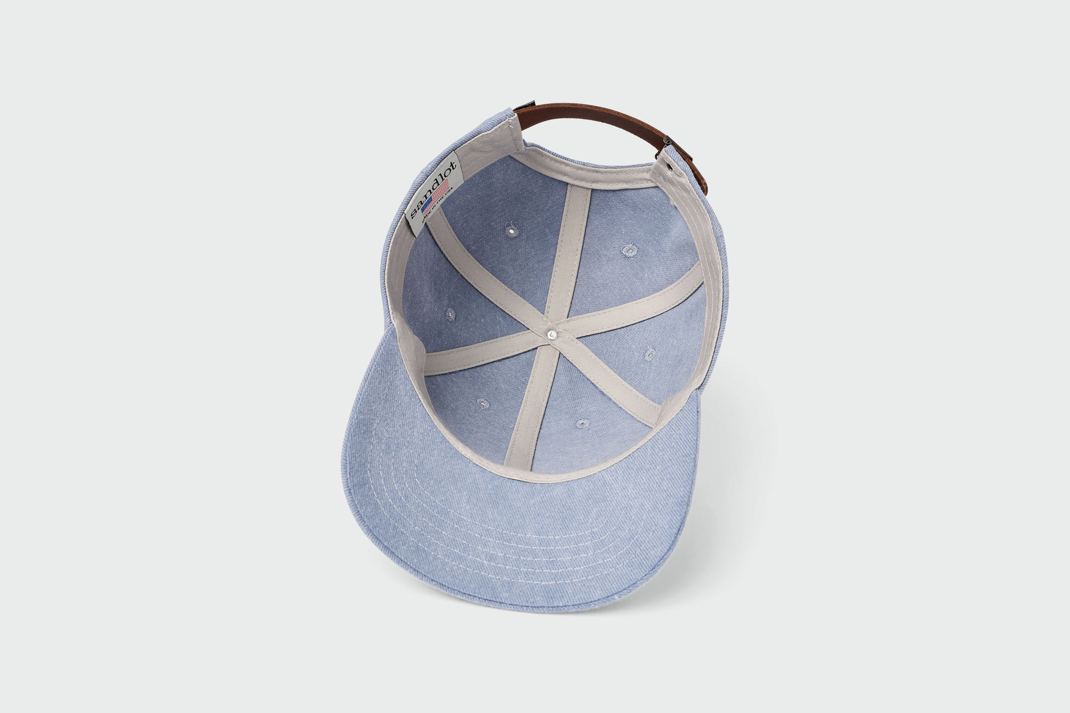 The 1912 Jayhawk Washed Twill Dad Hat features a direct embroidery of the iconic 1912 Jayhawk with a Leather strap and metal clasp closure. Sandlot Model 1810 Dad Hat.