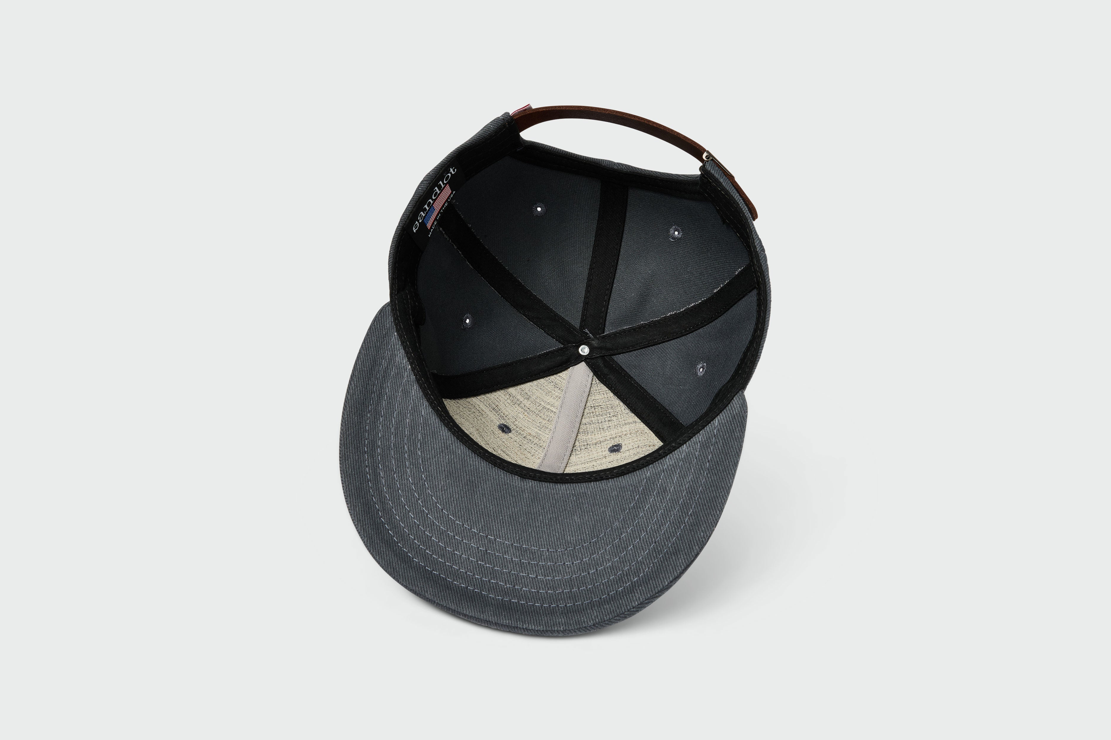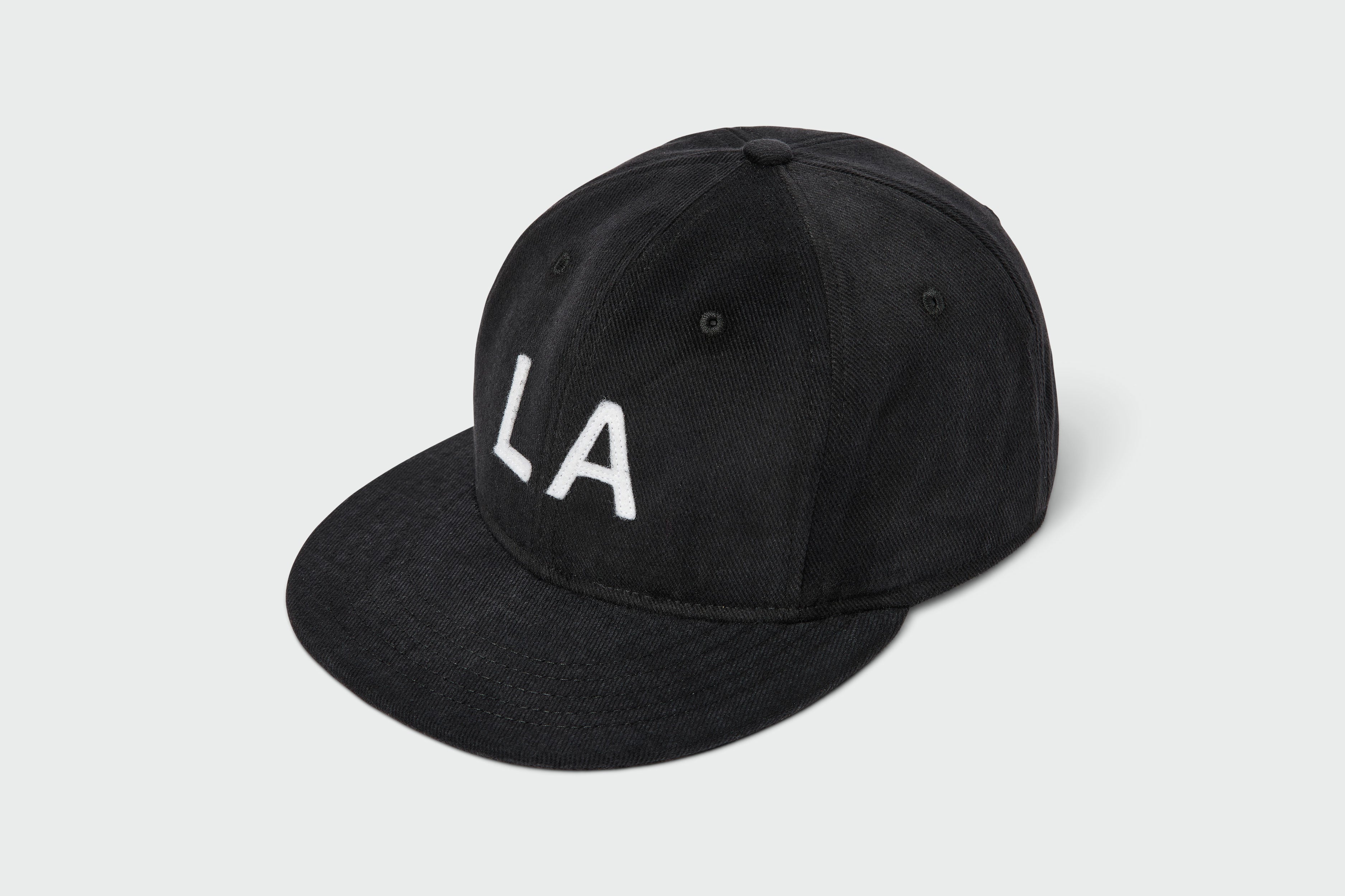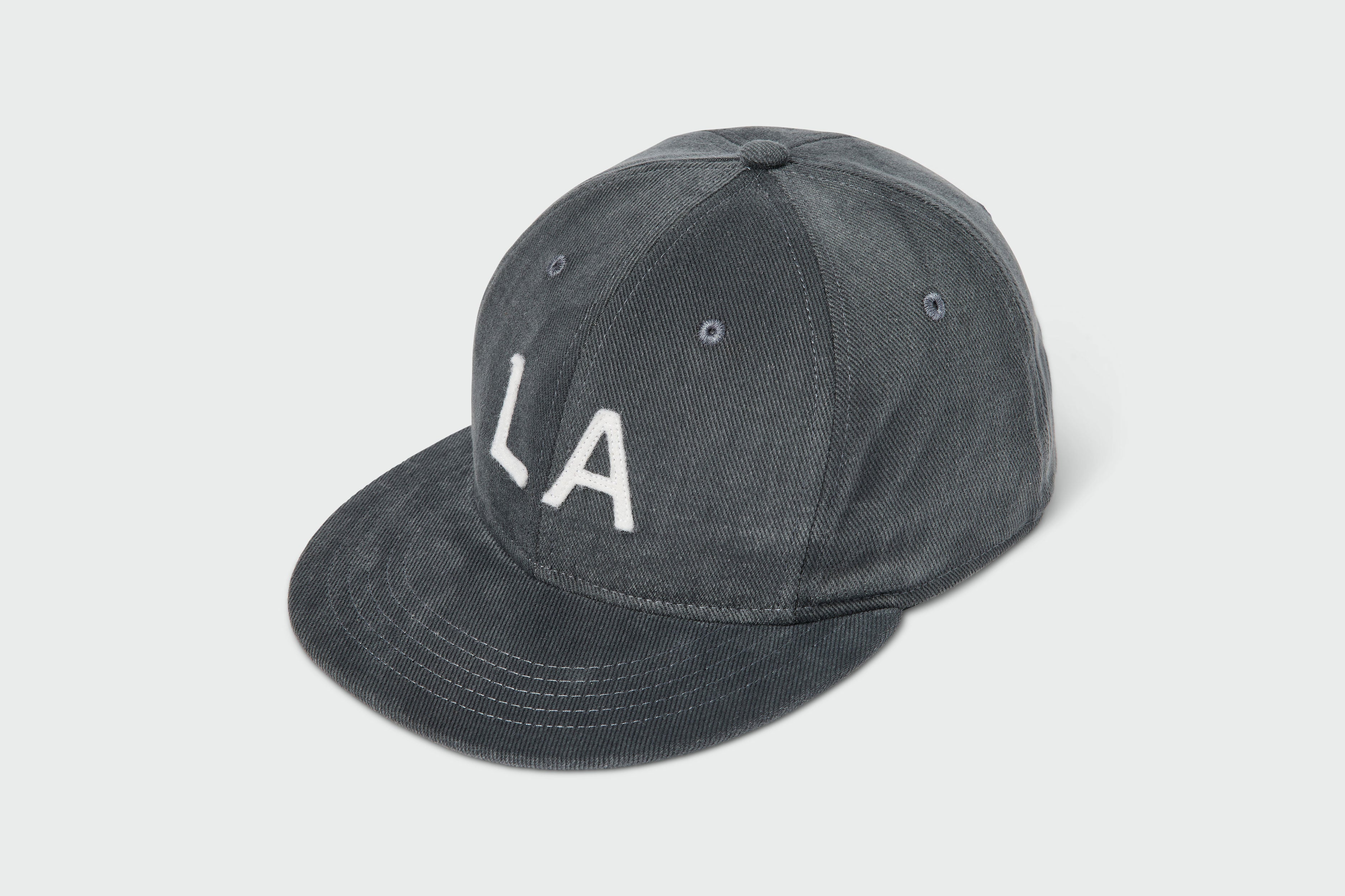 The Los Angeles Fullerton Bull Denim Vintage Flatbill features a Helvetica LA applique and a leather strap closure. Sandlot Model 1735 6-Panel Vintage Flatbill.