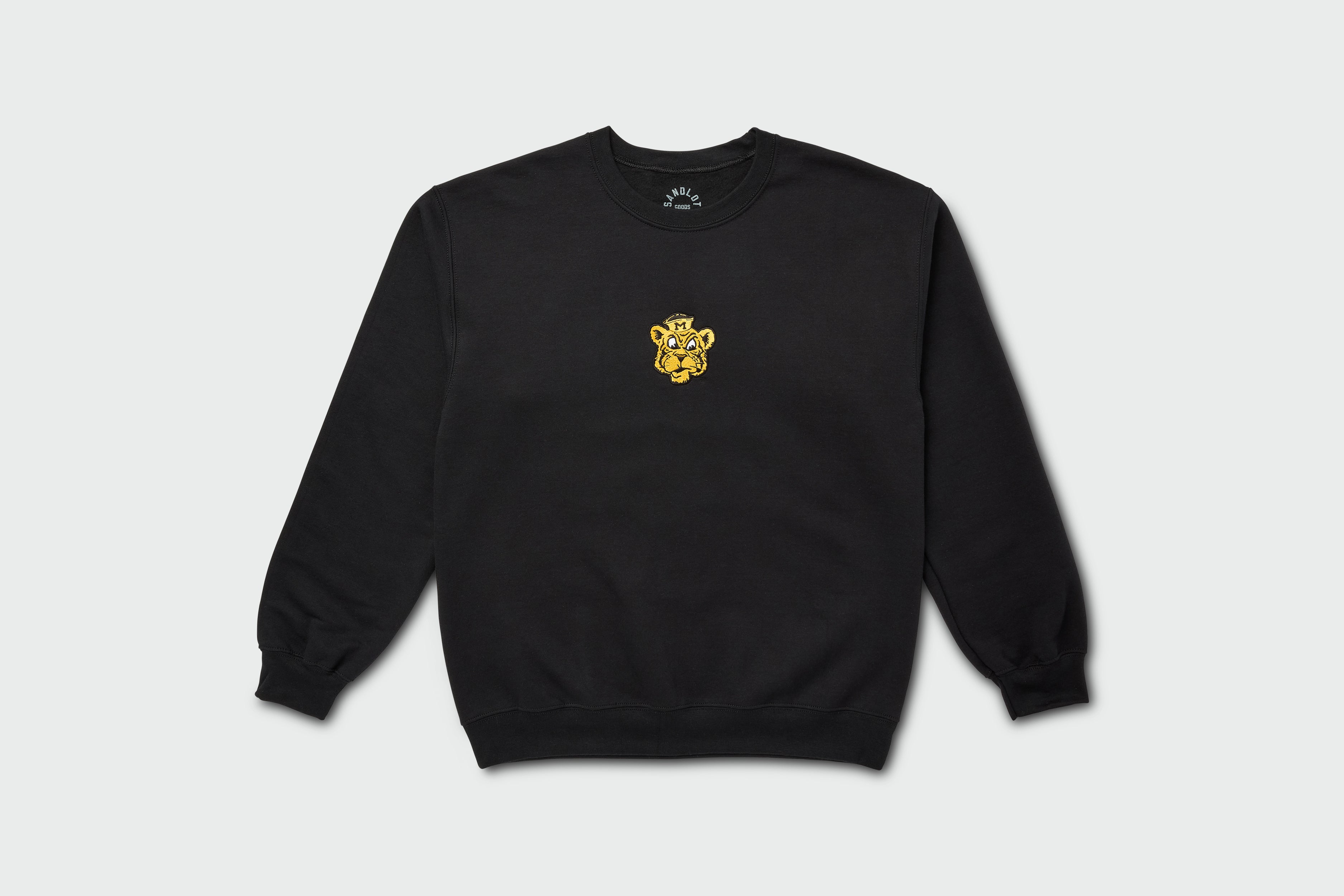 Feel the roar of tradition with this Mizzou Sailor Tiger Sweatshirt in classic black. Front and center is a vintage embroidered Sailor Tiger head, an iconic nod to the stylized illustrations that defined Mizzou’s look for ages. It’s bold without shouting—just the way we like it. The vintage mascot brings old-school energy with a modern fit, made for crisp campus walks, game day layers, or post-win celebrations downtown.