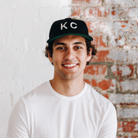 The Kansas City Wool Vintage Flatbill features applique wool lettering with a leather strap and metal clasp closure. Sandlot Model 1735 6-Panel.