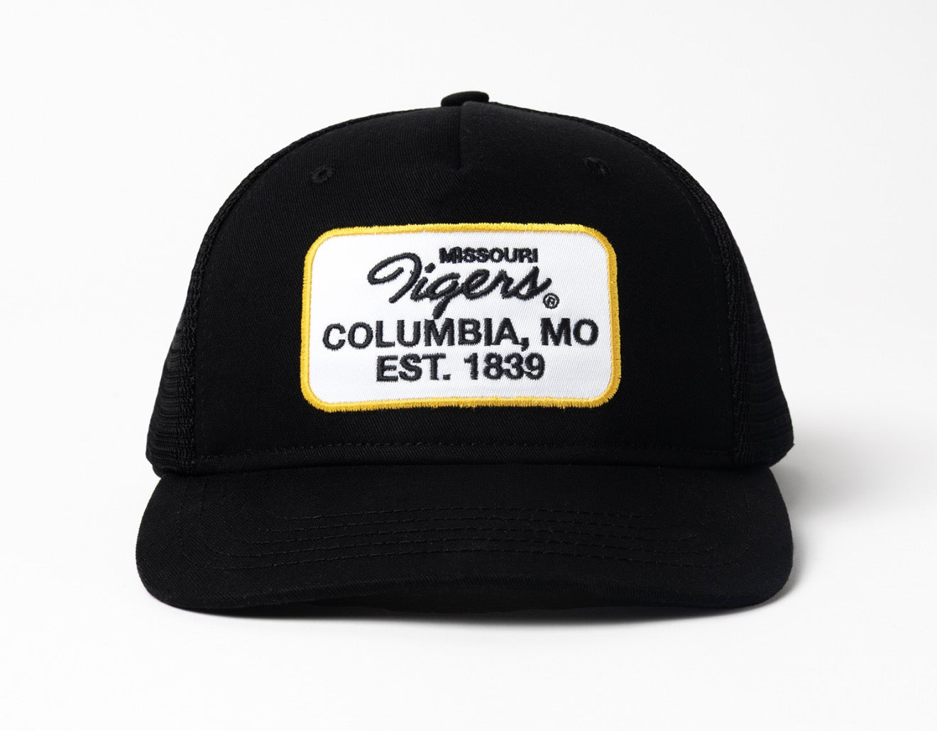 Cut and sewn in KC, this 100% cotton cap features a mesh backing with an adjustable snapback decorated with a Missouri Tigers Mechanics patch. Sandlot Model 2915T Trucker Hat